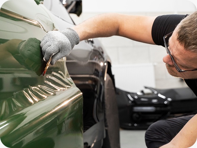 Возвращаем элементы на место, проверяем зазоры и прогреваем края пленки. Вы получаете автомобиль в новом цвете с гарантией на работу.