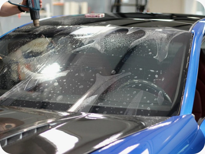 Мы устанавливаем на внешнюю сторону стекла прозрачную бронепленку. Она защищает от камней, пескоструя и трещин. Это гораздо дешевле, чем менять оригинальное лобовое стекло, особенно если на нем установлены датчики, камеры или подогрев.
